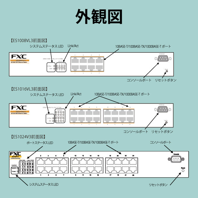 FXC ギガビット 24ポート 8ポート スマート ハブ ES1024V3/ES1008VL3